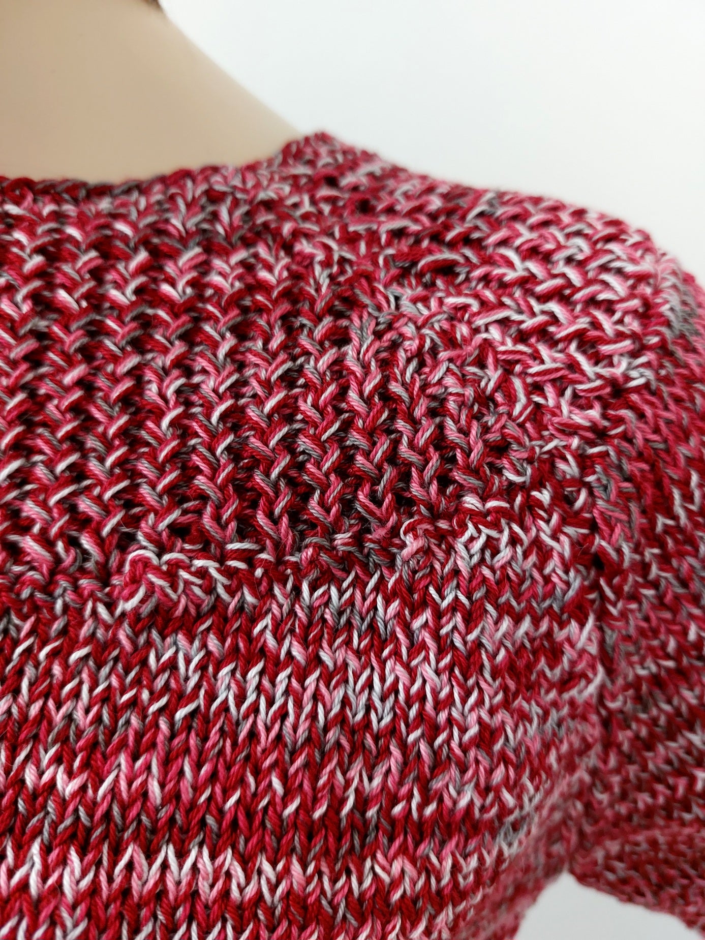 Handgestricktes, glattes Crop Top, U-Boot-Ausschnitt, Raglanärmel, kurze Ärmel, ohne Verschluss - wird über den Kopf gezogen, ganzjährig geeignet